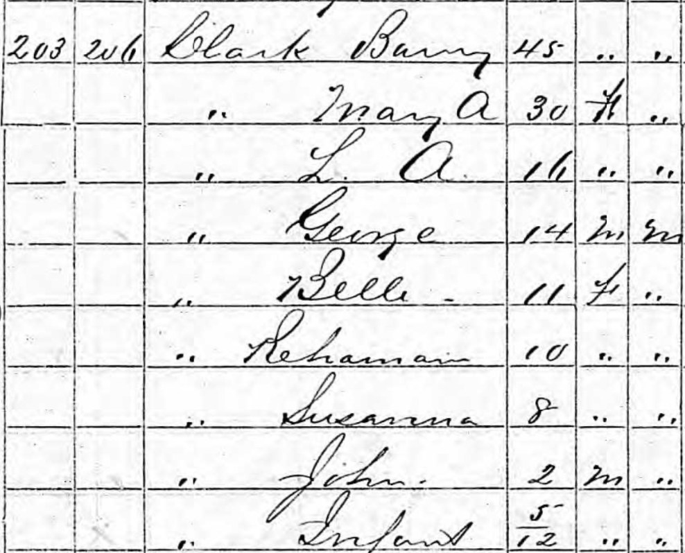 [4] Lettie Clark could be L. A. Clark in the census. While the age is different, the names consistently begin with an “L”