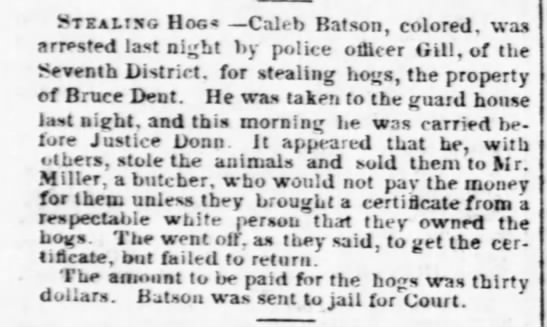 In Jan 1869, the Evening Star reports that he was sentenced to three months in jail for resisting arrest. In the National Republican, it was reported that Geo Dent, Geo Poole, and Barney Clinkett were found guilty and Clinkett was sent to jail for 39 days for the riot, while Dent when away for three months for resisting arrest.