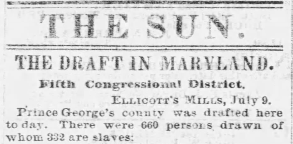In 1864, the Baltimore Sun ran the names of the people drafted for the Union Army from Prince George’s County, including the name of “Peter Stewart, slave of the estate of Benjamin Lee“.