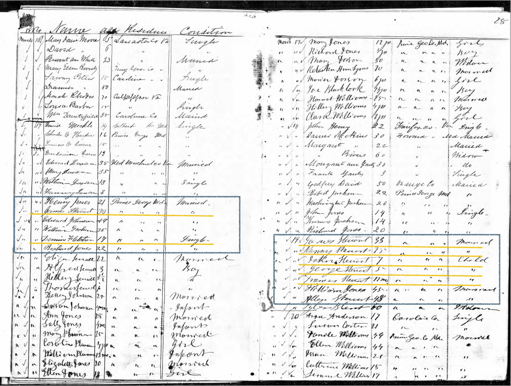 During the Civil War, Patrick and NotleyStewart escaped Prince George’s County for the District of Columbia, where slavery had been abolished in 1862 with their extended kin group. James Waring, the son of Marsham Waring, filed an affidavit seeking the return of the refugees to his captivity in May 1862.