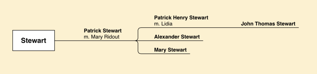 John E. Berry also submitted a list as administrator of the estate of Albert B Berry, his brother, who owned adjacent land. On the list submitted for A. B. Berry are Mary Stewart (I), age 58, and Alexander, age 22. Working from the assumption that Mary Stewart (I) is Mary Ridout, this allows us to expand the outline of the family. I wrote another detailed post about Mary Ridout and her connection with other Ridout Branches (and therefore the Stewart family).