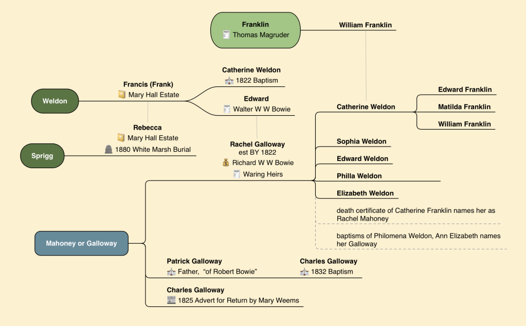 The affidavit by William W. Wilson names John’s first wife. He states in his message that “John Woodard was married before to one Rachel Contee and died in June 1848 on “Baltimore Manors” in Kent District, Prince George’s County, Maryland.”