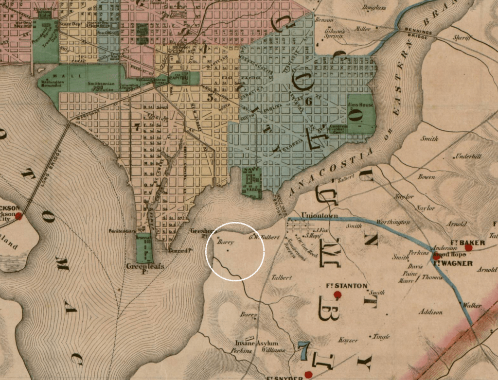 Baltimore Manor was the name of the estate owned by the Wilsons for generations. It sat on the land that FedEx field currently sits on. William Wilson was the father of Washington Wilson, Margery Wilson and Joseph H Wilson and other children. When he died around 1817, portions of Baltimore Manor were bequeathed to Washington Wilson and Margery Wilson and other lands (among them Beall’s Pasture) was bequeathed to Joseph H Wilson, the father of Mortimer L. Wilson and William W. Wilson. Joseph H Wilson acquired portions of Baltimore Manor after the death of his brother, Washington Wilson, in 1825 and a chancery suit. (MHT)