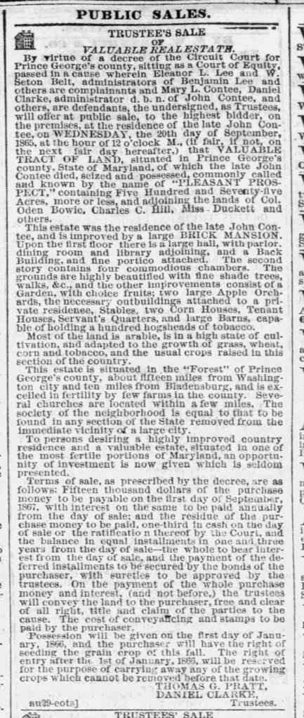 empires of Leaf and Labor Queen Anne District was situated in the “Forest of Prince George’s County”, and a contributor to the New York Times described it as “the great tobacco region of Maryland, and probably no other territory of equal extent in America produces so much of that famous weed.” [Dec 6, 1861] This…